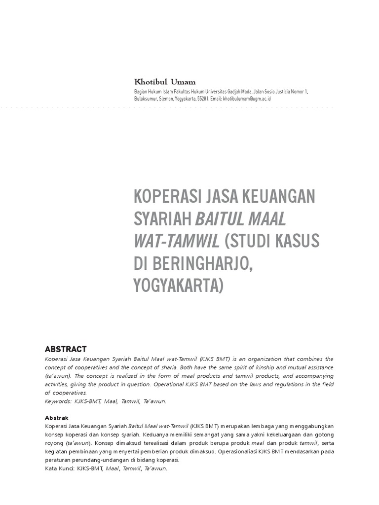 Kebijakan regulasi baitul maal wat tamwil (bmt) di indonesia fadillah mursid abstract the financial sector in indonesia is one of the .